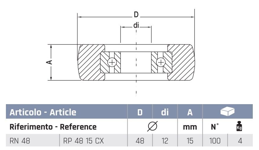 The RN 48 Nylon Roller is designed for applications requiring a balance of compact size and increased load capacity. Manufactured in Italy using high-quality PA6 nylon and fitted with a sealed 6001 2RS bearing, it delivers consistent, reliable rolling with excellent wear resistance.