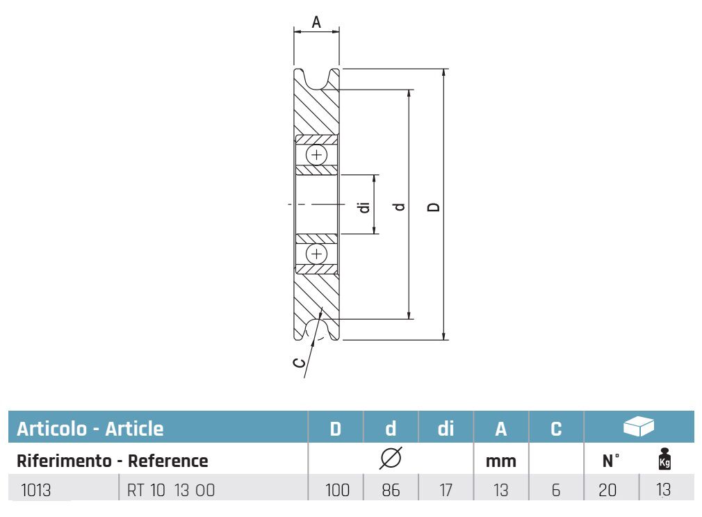 - 100mm diameter steel pulley with round O-groove (6mm)